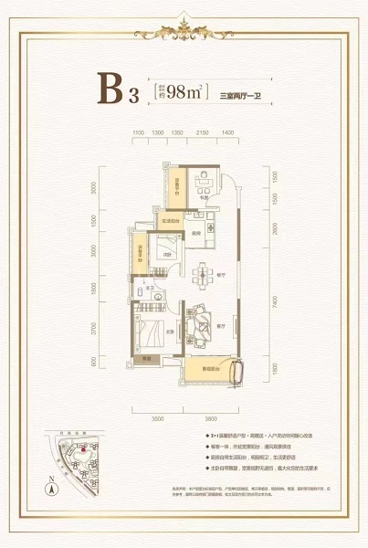 房屋戶型3房2廳1衛(wèi)